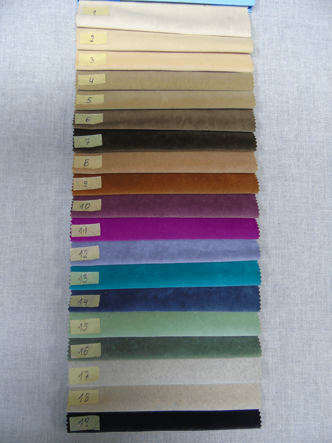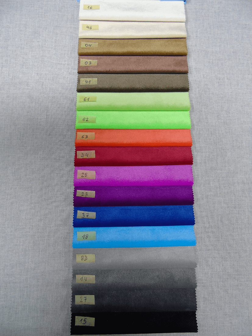 Tkanina welurowa miękka w dotyku cieniująca z niewielkim połyskiem, łatwa w czyszczeniu, o dużej odporności na zabrudzenia i ścieranie ( 80.000 cykli)